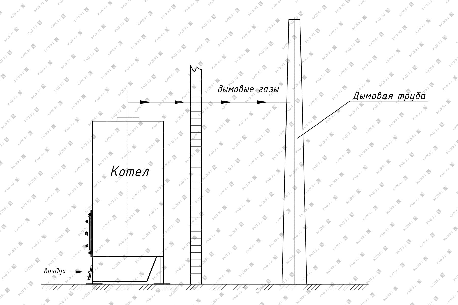 Подвод воздуха в водогрейный котел КВр 0.25 МВт осуществляется за счет разряжения в топке, путем подсоса через дверку - заслонку в зольный короб под колосниковую решетку.