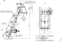 Транспортер СКИП 300 представляет собой устройство, собранное последовательно основание – опорной рамы предназначено для передачи нагрузки от веса подъемника и поднимаемого груза на опорную поверхность, направляющей – рамы с полозьями для движения в них ковша (скипа), скипа – ковша для загрузки в него и подъема в нем сыпучего материала, ограждений для ограничения доступа к движущимся элементам подъемника, привода – силового агрегата с тормозом осуществляющего перемещение ковша по направляющей с помощью канатной тяги, в крайних положениях ковша устанавливаются концевые выключатели для ограничения перемещения ковша и автоматизации приема крайних положений в ходе рабочего цикла.
