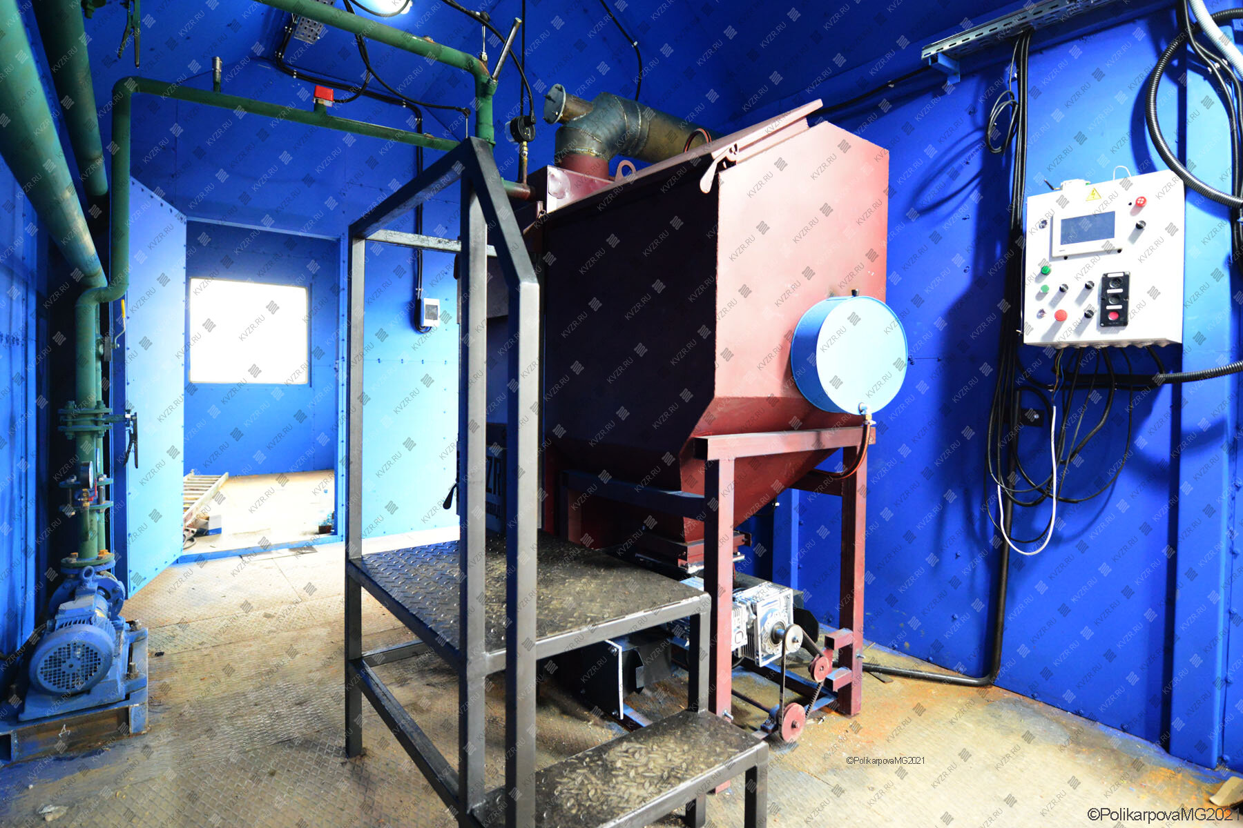 Первым правилом любой производственной пеллетной котельной является – не горючие стены, крыша и пол. Расположение основного склада топлива не должно находится в том же помещении, что и теплогенератор. На оборудовании предусмотренный бункер называется оперативным, так как его объема хватает только на несколько часов работы, это прежде всего связанно с требованиями по пожарной безопасности. В котельной обязательно должна быть приточно вытяжная вентиляция, или возможность проветривания помещения. Так как воздух для процесса горения забирается изнутри котельной, следует предусмотреть наличие приточки.